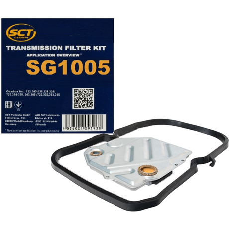 Aprašymas: „SCT SG 1005“ yra specializuotas transmisijos aptarnavimo komplektas, skirtas „Mercedes-Benz“ automobiliams su klasikinėmis 4 laipsnių (722.3) ir ankstyvosiomis 5 laipsnių (722.5) automatinėmis pavarų dėžėmis. Šis komplektas užtikrina optimalų hidraulinio skysčio filtravimą, kuris yra gyvybiškai svarbus šioms dėžėms, siekiant išvengti „smūgiavimo“ perjungiant pavaras ir apsaugoti sudėtingą vidinių vožtuvų sistemą. 722.5 transmisijos atveju filtras padeda išlaikyti penktosios (elektroniniu būdu valdomos) pavaros mazgo ilgaamžiškumą.