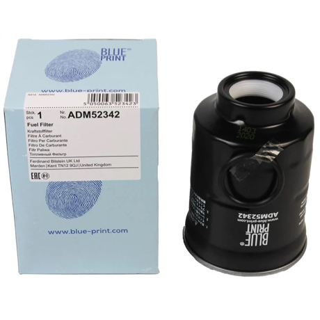 Aprašymas: „Blue Print ADM52342“ yra itin plataus panaudojimo spekto kuro filtras, skirtas japoniškiems ir kai kuriems europietiškiems dyzeliniams automobiliams. Šis „Spin-on“ tipo filtras pasižymi tvirtu metaliniu korpusu ir yra sukurtas atlaikyti aukštą slėgį bei užtikrinti maksimalų dyzelino grynumą. Jis efektyviai sulaiko vandenį ir smulkias abrazyvines daleles, kurios yra pagrindinis „Common Rail“ bei senosios kartos mechaninių siurblių priešas.