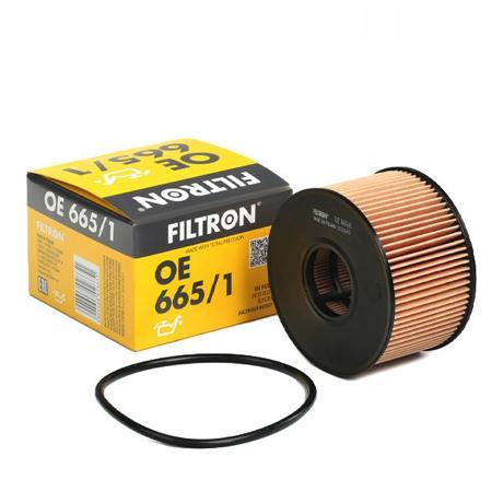 Aprašymas: Filtron OE 665/1 yra specifinės, žemos ir plačios formos alyvos filtro elementas, skirtas galingiems Ford ir Jaguar dyzeliniams varikliams. Nors jis priklauso tai pačiai šeimai kaip OE 665, šis variantas pasižymi didesniu išoriniu skersmeniu (91 mm) ir mažesniu aukščiu, kas leidžia užtikrinti didelį alyvos pralaidumą esant ribotai vietai variklio skyriuje. Filtravimo medžiaga yra specialiai pritaikyta „Duratorq“ variklių specifikai, efektyviai sulaikant dyzelino degimo metu susidarančius suodžius.