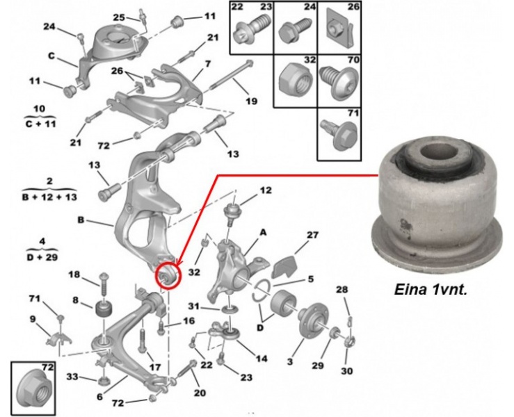 Rekomendacija: Keičiant valdymo svirties įvores, patartina jas keisti poromis abiejose automobilio pusėse, kad būtų užtikrintas tolygus pakabos darbas ir ratų suvedimo stabilumas.